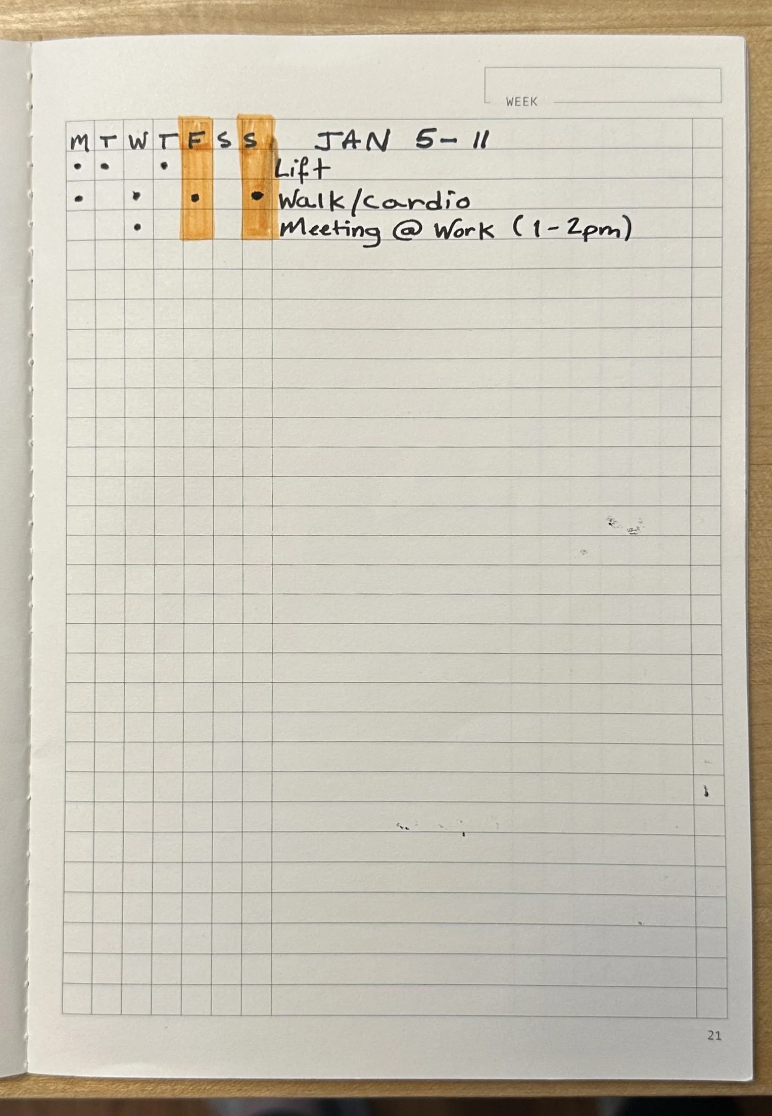 The conversation shifted to tracking habits the old-fashioned way — journaling. If you’ve interacted with me much, you’ve probably figured out that I’m very much an out-of-sight, out-of-mind person. When I don’t see what I need to do, I forget. And when I don’t plan in a way that’s visible, my routine tends to fall apart.